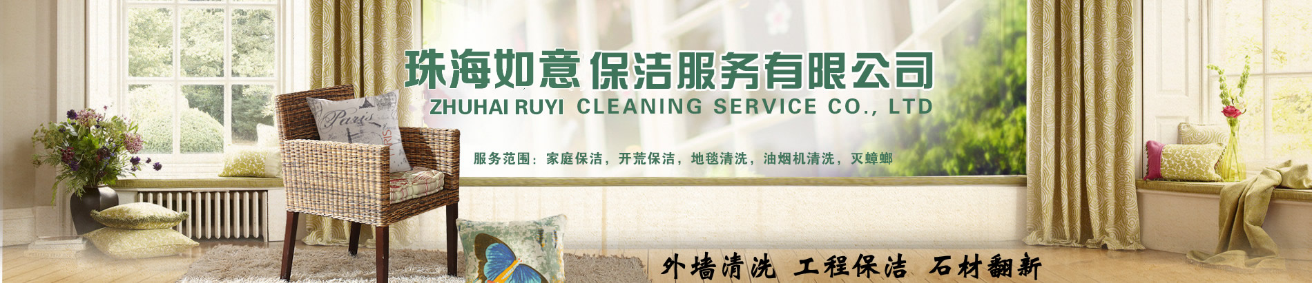珠海市如意清潔主營(yíng):外墻清洗、地毯清洗、石材護(hù)理翻新、企業(yè)保潔、開(kāi)荒清潔、屋面防水、油煙管道清洗。家庭保潔,物業(yè)保潔,小區(qū)物業(yè)保潔,樓盤(pán)開(kāi)荒,沙發(fā)清潔,地板打蠟,(建筑、汽車玻璃貼膜)。